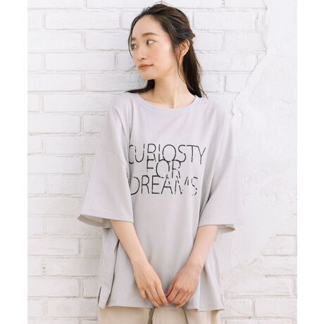 メッセージロゴが目を引く、遊び心のあるプリントTシャツ。