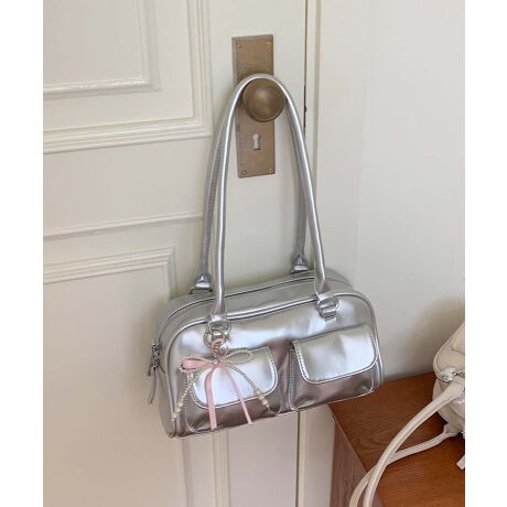 シンプルでリボンが付いたPUショルダーバッグ。日常のコーディネートに合わせやすく、どんなシーンにもぴったりなアイテムです。