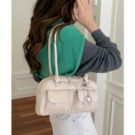 シンプルでリボンが付いたPUショルダーバッグ。日常のコーディネートに合わせやすく、どんなシーンにもぴったりなアイテムです。