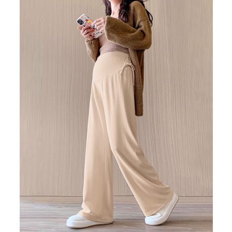 サイドに調節紐がついていて綺麗なシルエットで長く着用できる、マタニティ用ワイドパンツ。ハイウエストでお腹をしっかりとサポートしつつ、体型の変化に合わせてフィット感を調整できます。