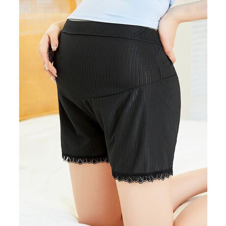 優しいフィット感でお腹を包み込む、裾のレースがポイントのマタニティショートパンツ。伸縮性の高い生地がしっかりと腹部をサポートし、妊娠中でも快適な着用感を実現。