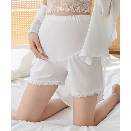 優しいフィット感でお腹を包み込む、裾のレースがポイントのマタニティショートパンツ。伸縮性の高い生地がしっかりと腹部をサポートし、妊娠中でも快適な着用感を実現。
