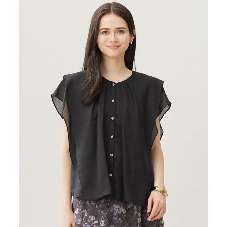 袖のタックフリルが華やかなブラウス■デザイン袖に大胆な2段のタックフリルをあしらい、身頃までドレープが出るようにデザインしたブラウスです。大きなデザインフリルが華やかで、1枚着としても存在感を際立たせてくれる1着となっております。程よい丈感なので、スカートやパンツなど様々なボトムと合わせて頂けます。■素材ハリコシのあるラミーと柔らかいセルロース系再生繊維を混紡することにより、さらりとしたドライ感がありながらもしなやかさも兼ね備えた、程よいシアー感のある素材です。天然素材であるラミーの良さを生かしつつ、きれいめに仕上げているので、カジュアルになり過ぎず大人っぽさを感じられる素材感です。さらりとしたタッチの薄地で、接触冷感機能もあるので、暑い夏にもおすすめの素材です。麻高混率でありながらも鋭利なシワが付きにくく、洗いざらしでも程よいナチュラルさで着て頂けます。■同素材アイテムクロップド丈ブラウス(BLWRGA0106)イレギュラーヘムスリーブブラウス(BLWRGA6702)フレンチスリーブワンピース(OPWRGA0105)シャツワンピース(OPWRGA6702)