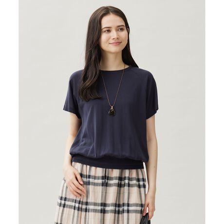 メリハリのあるシルエットですっきり着て頂けるラグランスリーブニットソー■デザインジャージ素材ながら上品な印象のラグランスリーブニットソーです。シルエットはゆとりを持たせつつも、腰回りなどはすっきりとコンパクトにお作りしているので、ワイドボトムとの相性もピッタリです。襟と裾部分の編み柄もポイントになっています。■素材天然繊維の精製セルロースである再生繊維を使用したニットソーです。しなやかでソフトな風合いと上品な光沢感が特徴です。16Gの編み機で天竺組織に仕上げています。接触冷感、UVケア機能付きの手洗い可能な素材です。■同素材アイテムドルマンスリーブニットソー(KKW7GA0131)
