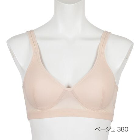 このブラジャーは、抜群の通気性と、アウターに響きにくい美しいシルエットを両立させた高機能インナーです。本体に通気性に優れたメッシュ素材を全面または広範囲に使用しています。これにより、汗をかいても湿度がこもらず、サラリとした快適な着け心地が一日中持続します。特に汗ムレが気になる季節や、ジムなどのアクティブなシーンに最適です。カップ部分には、縫い目がなくつるんとしたモールドカップを採用しています。このモールドカップがバストをきれいに整え、Tシャツのような薄着やぴったりしたアウターを着用しても、デコボコしたラインが響きにくいのが大きな特長です。ワイヤーブラの窮屈さが苦手な方にも、軽くさわやかな着用感でバストを程よく整える、ストレスフリーな一枚です。