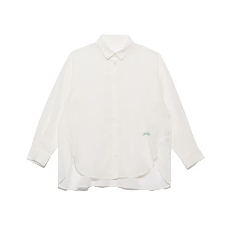 薄手の楊柳コットンのシャツです。ゆとりをつけたシルエットで涼しく、透け感もきれいに見せてくれます。 ジャンセンロゴの刺繍がアクセントになっています。
