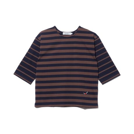 ピッチの違うボーダーを組み合わせたジャンセンオリジナルのボーダーTです。 程よい肉厚感のある綿100%の素材を使用し、シーズン問わず着回せる7分袖のトップスです。 1枚でさまになる遊び心のあるボーダートップスです。 裾にDIVING GIRLの刺繍入り。