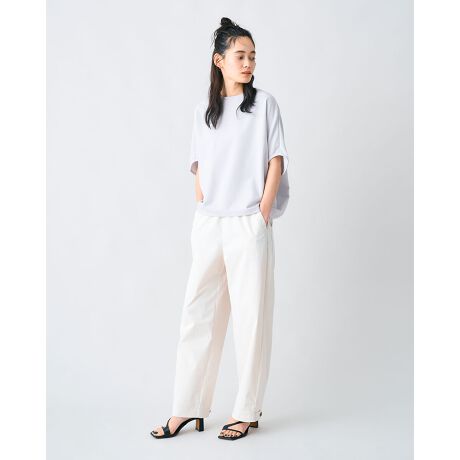 ウエストゴム使いでワイド目シルエット仕上げ。
