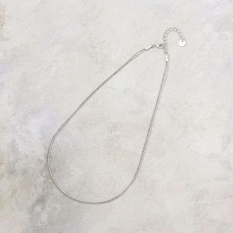 デザインの違うチェーンを組み合わせたショートネックレス。