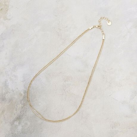 デザインの違うチェーンを組み合わせたショートネックレス。