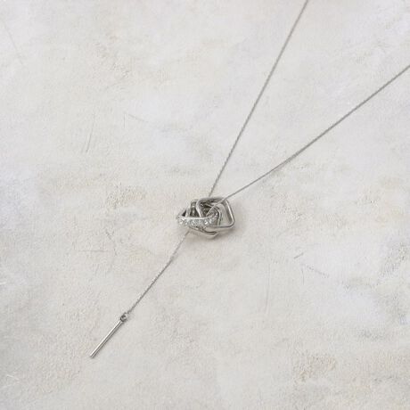 スクエアパーツにきらりと光るビジューを配したリングネックレス。