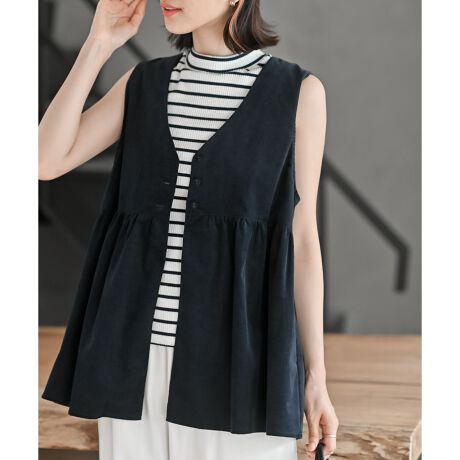 コーデュロイペプラムベスト