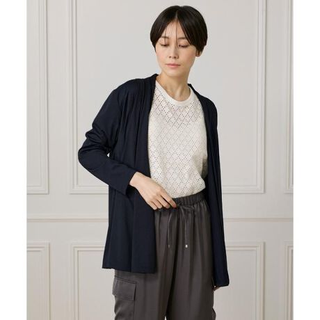 ■デザイン肩にタックを施した長袖カーディガン。裾にかけてふんわりと広がるシルエットが、リラックス感と上品なニュアンスをプラスしてくれます。軽やかな素材で持ち運びしやすく、夏の強い日差しや冷房対策にもぴったり。さらっと羽織るだけで、こなれた印象を演出してくれる一枚です。同素材のプルオーバーと合わせたセットアップコーデもおすすめ。■素材毛羽立ちのない、さらりとした爽やかな肌触りが特徴の素材を使用。ハイゲージジ仕立てられており、見た目にも美しく上品な印象を与えます。コンパクトな質感とほどよい光沢感が、洗練された仕上がりを演出します。・水洗い可同素材のトップス品番:7052190020■サンプル撮影商品画像の商品はサンプルです。実際の商品とはサイズや色味、素材、デザイン等の仕様が若干変更になる場合がございます。■カラーについては、可能な限り実際の商品に近いカラーで撮影をおこなっておりますが、照明の関係により実際の製品とは色味が違って見える場合があります。またパソコン・スマートフォンなどの環境により、若干製品と画像のカラーが異なる場合もございます。現物と画像のカラー差異については返品理由となりませんので、予めご了承ください。■サイズ表記はあくまで目安となります。