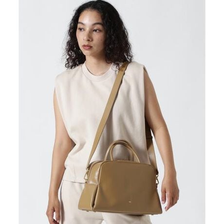 くびれたフォルムとミニマルなデザインが魅力な<PETAL>シリーズから大き目サイズのボストンバッグをリリース。やさしい光沢感のあるスムースカウレザーを使用。AW仕様で起毛裏地になっています。iPadが入る大きさで、財布、スマートフォン、ポーチ、折り畳み傘やペットボトルなど必需品プラスアルファがしっかりと収納できるサイズ感。様々なスタイルやシーンに馴染む、上品なシルエットとひと癖あるデザインがポイント。