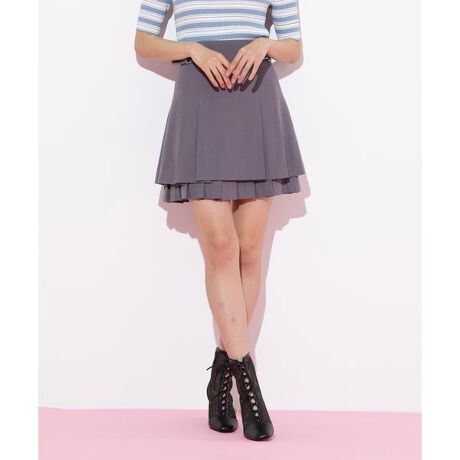 レイヤード風デザインがこなれ感を演出するミニスカート。裾からのぞく立体感のある重なりディテールが目を引くデザインで、シンプルながらもトレンド感のある仕上がりに。両サイドはストラップ付きで、フィット感を調整できるのも嬉しいポイント。裏地はショートパンツ型で安心の着用感です。コンパクトな丈感なので、Tシャツやニット、シャツともバランス良く着こなせます。※撮影時照明の関係により、色味が違って見える場合がございます。またパソコン・スマートフォンなどの環境により、若干製品と画像のカラーが異なる場合もございます。予めご了承ください。商品の色味は、商品単品画像をご参照下さい。※商品画像はサンプルのため、色味やサイズ等の仕様に変更がある場合がございますので、予めご了承ください。