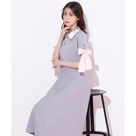 トレンドのダブル襟を取り入れたニットワンピース。布帛の襟とカフスが付いているだけでおしゃれなムードを演出。袖のリボンがキャッチーで華やかさもプラスします。ウエスト位置を高めに切り替えているのでスタイルアップも叶うデザイン。さらっとしたドライタッチの糸を使用しているので、暑い時期でもべたつくことなく着ていただけます。※撮影時照明の関係により、色味が違って見える場合がございます。またパソコン・スマートフォンなどの環境により、若干製品と画像のカラーが異なる場合もございます。予めご了承ください。商品の色味は、商品単品画像をご参照下さい。※商品画像はサンプルのため、色味やサイズ等の仕様に変更がある場合がございますので、予めご了承ください。