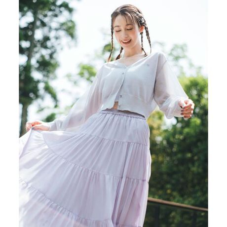 光沢のあるシアー楊柳素材にギャザーをふんだんに寄せたボリュームティアードスカート。裾にかけて幅が広くなる4段のティアード切り替えで脚長効果を期待できます。淡いカラーをベースに、裾の配色テープを効かせているのがポイント。ウエストはゴム仕様でフィットしながらラクに着用いただけます。※撮影時照明の関係により、色味が違って見える場合がございます。またパソコン・スマートフォンなどの環境により、若干製品と画像のカラーが異なる場合もございます。予めご了承ください。商品の色味は、商品単品画像をご参照下さい。※商品画像はサンプルのため、色味やサイズ等の仕様に変更がある場合がございますので、予めご了承ください。