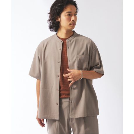 シンプルでありながら、ほんの少しオーバーサイズに仕上げて、リラックス感をプラスした半袖シャツです。落ち感のあるバンドカラーが大人っぽさを演出し、キレイめな印象を保ちながらも、ラフに着こなせるデザインに仕上げました。