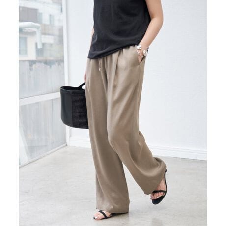 光沢感が程よく抑えられたサテン素材を使用したイージーパンツ。