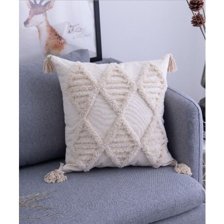 立体感のある布地に大胆な柄と大きなタッセルを合わせました。