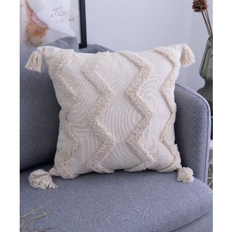 立体感のある布地に大胆な柄と大きなタッセルを合わせました。
