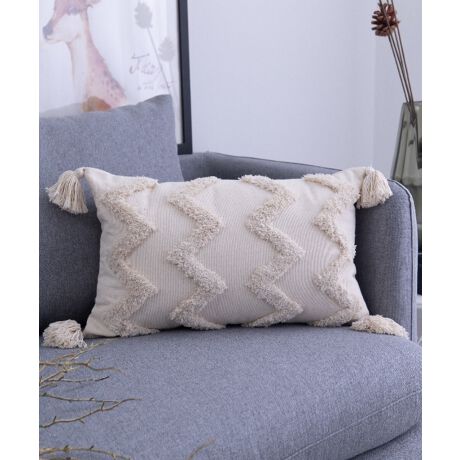 立体感のある布地に大胆な柄と大きなタッセルを合わせました。