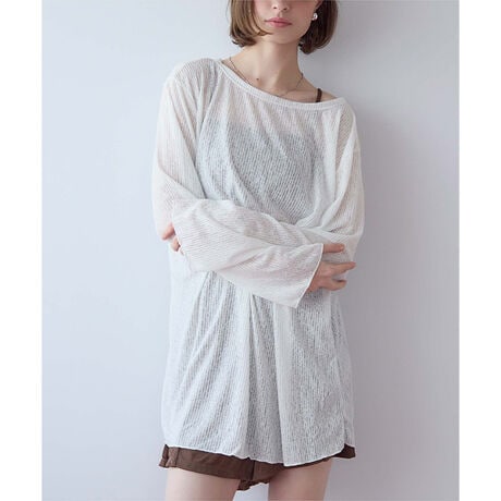 ・オーバーサイズ×シアー素材のトップスが抜け感抜群で、大人っぽいスタイリングを叶えます。