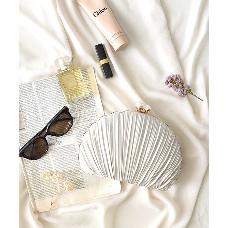海の宝石“シェル”を思わせる、エレガントなフォルムが印象的なパーティバッグ。