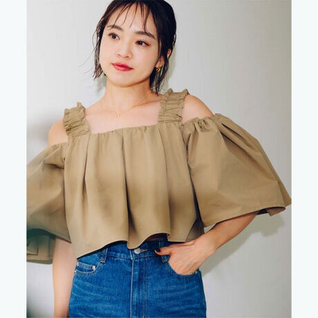 【春名亜美さんコラボアイテム】2wayフリルショルダートップス