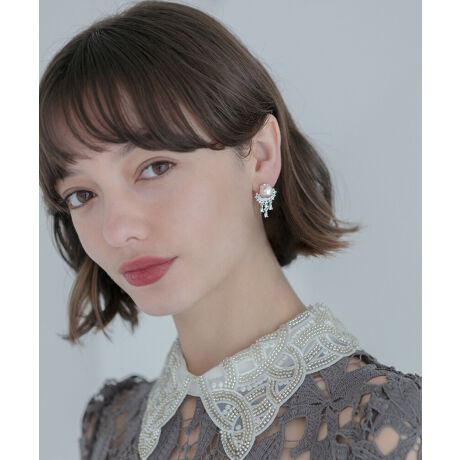 耳元で揺れるビジューが、動きに合わせて煌めきを放ちます。