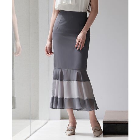 裾部分に透け感を取り入れたタイトなシルエットのハイウエストスカート。
