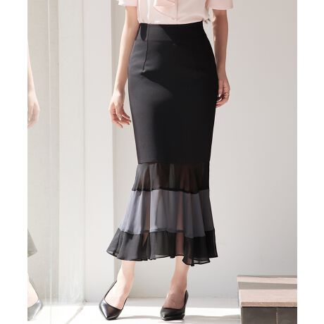 裾部分に透け感を取り入れたタイトなシルエットのハイウエストスカート。