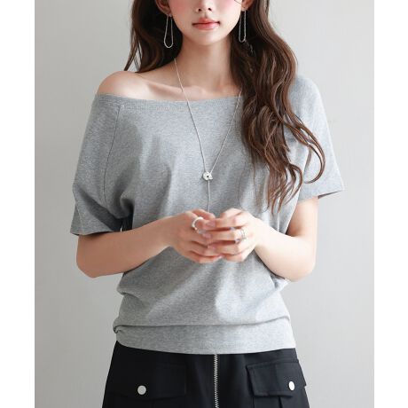 広めのボートネックでワンショルダーも楽しめるカットソーTシャツ。