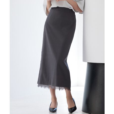 裾部分には同色のレースがあしらわれています。シンプルなスカートに華やかで大人可愛い印象をプラスします。スカート部分は透ける心配がない裏地付き。