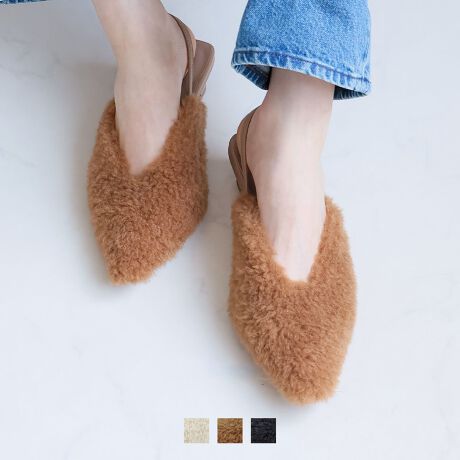 ・ポリュームのあるもこもこボアが大人カワイイスリングバックパンプス!