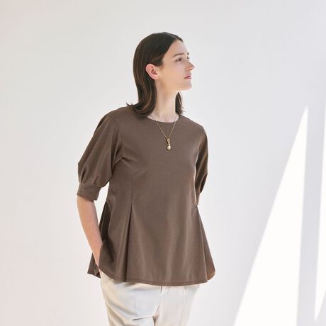 ボートネックラインで首まわりをすっきりときれいに見せてくれます。