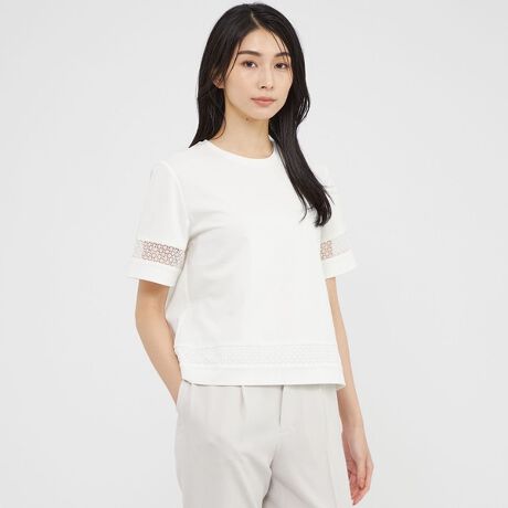 <レースがアクセントを効かせる上品ジャージプルオーバー>