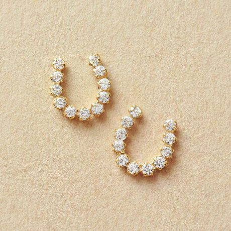 繊細なキュービックジルコニアがキラキラと煌めく馬蹄のワンポイントピアス。