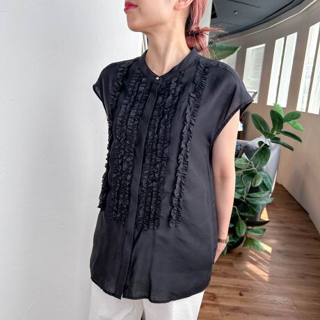 フロントデザインのフリルが目を惹く、WEB限定ノースリーブブラウス。