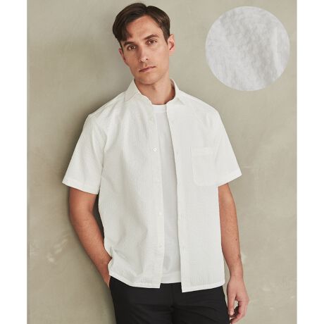 ■商品特徴クールビズの時に一枚で出来る仕事着に加え、普段使いもできるサッカー地のビジカジシャツです。軽量且つドライタッチで汗がベタつきにくくなっており、暑い夏場でも涼しく着用いただけます。家庭洗濯可能でシワがつきにくく、そのままでも着ることができるお手軽さも魅力的。 ビジネスシーンにもなじむ色柄を使用しており、大人の夏の半袖シャツに最適です。