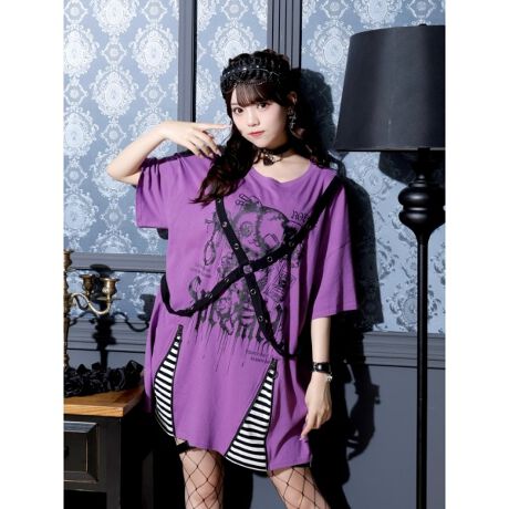ヤミネコプリントにクロスするハーネスがクールなアクセントに映えるTシャツ。