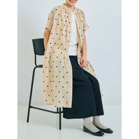 小さなドット刺しゅうで愛らしいアクセントをプラスするシャツワンピース。