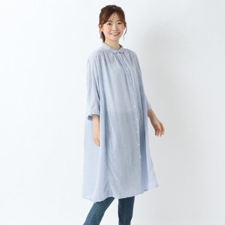 薄手のコットンシアーライトガーゼ生地を使用した7分袖シャツワンピース。