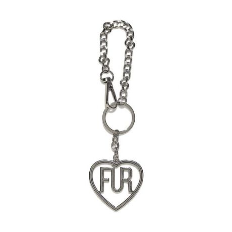 大きいハートの中にブランドロゴをデザインしたバッグチャーム。様々なアイテムに下げられるよう、チェーンを下げた仕様にしております。