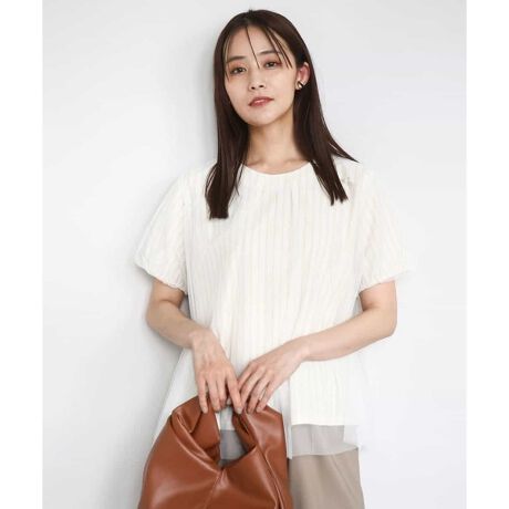 マルイウェブチャネル   /   MK ミッシェルクラン   /   トップス   /   Tシャツ・カットソー   /   【ビジネス/洗える】先染めストライプ柄チュール カットソー