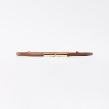 バータイプのバックルなのでレザーの帯部分との一体感があり、アクセサリーのようなデザインなので、さりげなくウエストマークできます。