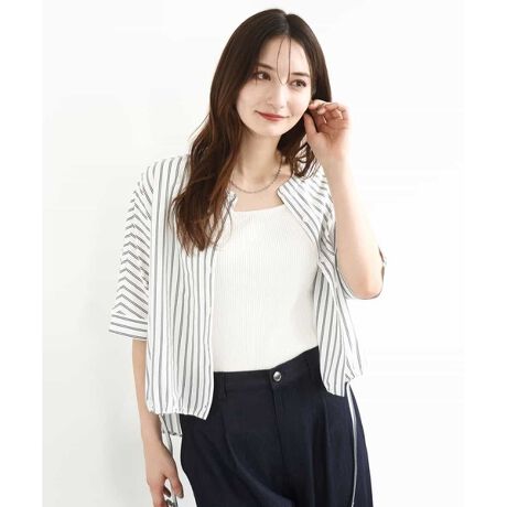 【シャツ羽織り/洗える】先染めストライプ柄ドロストデザインカットソー