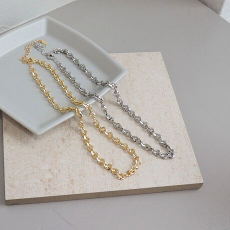 ・丸みのあるチェーンがいくつも重なった、程よいボリューム感のあるネックレス