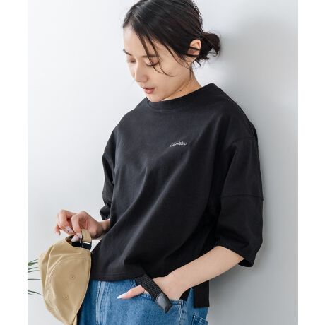 女性らしい華奢なロゴ刺繍入り!ワイドあわせにぴったりな絶妙ショート丈Tシャツです。
