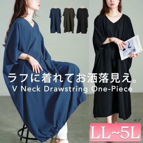 マルイウェブチャネル   /   ゴールドジャパン   /   ワンピースドレス   /   ワンピース   /   【大きいサイズ】 楊柳Vネック裾ドロストドルマンワンピース 大きいサイズ レディース ワンピース 夏